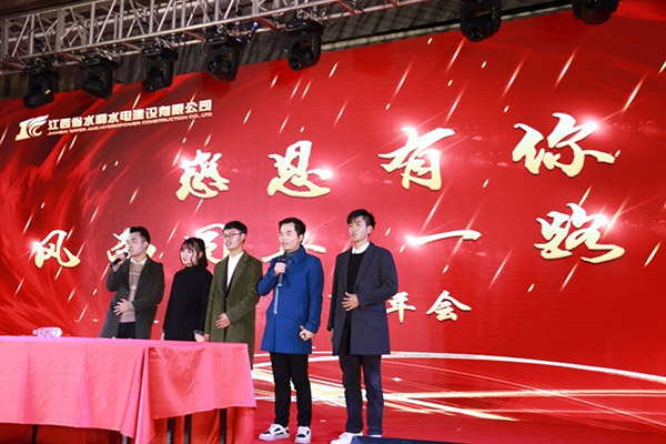 鮮紅的綢帶,迎來明媚的新春;火紅的笑臉,洋溢著節日的喜慶。隨后的文藝匯演在舞蹈《鼓舞飛揚》中拉開帷幕,舞蹈,歌曲聯唱,情景劇、詩朗誦、相聲、大合唱等文藝節目輪番上演,整場演出精彩絕倫,高潮迭起。年會中穿插了《2018年工程巡禮》、《國內外員工拜年》視頻,豐富的表現形式反映了一年來公司取得的豐碩成果和公司員工在工作、生活中的點點滴滴,體現了江西水建人昂揚向上的精神面貌。